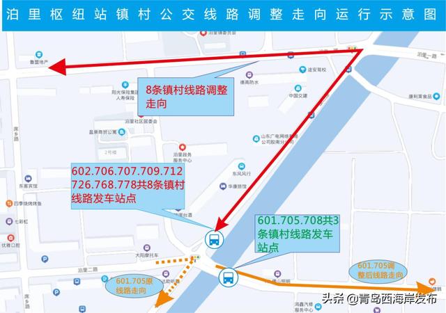 1、站点调整:以上三条公交线路的发车站点由泊里枢纽站站内调整至邱家庄大桥东侧的泊里枢纽站镇村公交发车点②。