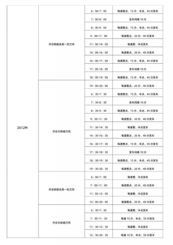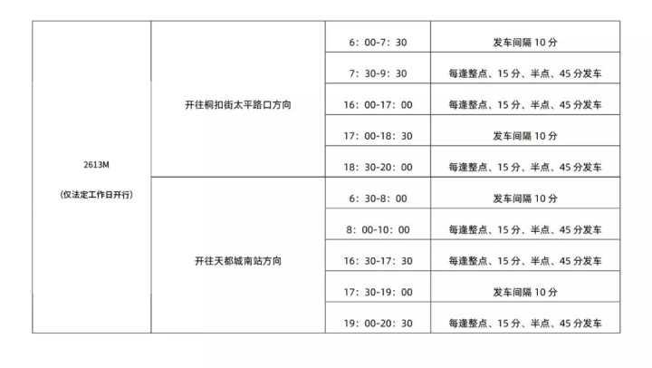 环丁路长虹路南口为6:30-9:00(发车间隔不大于5分);
