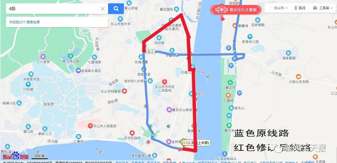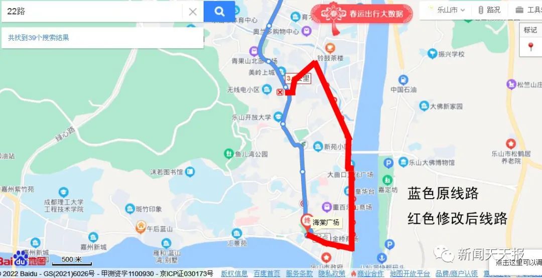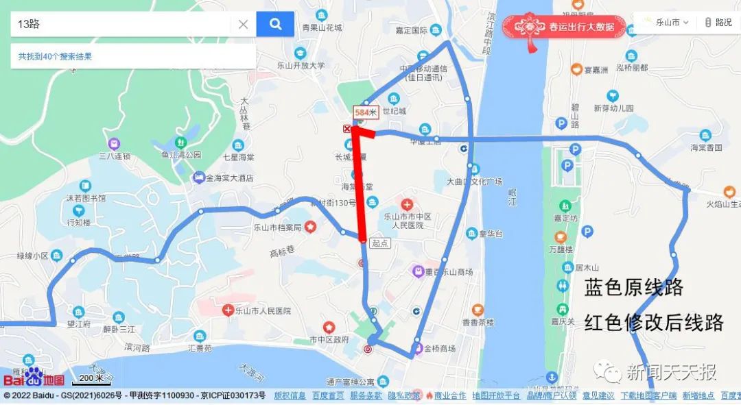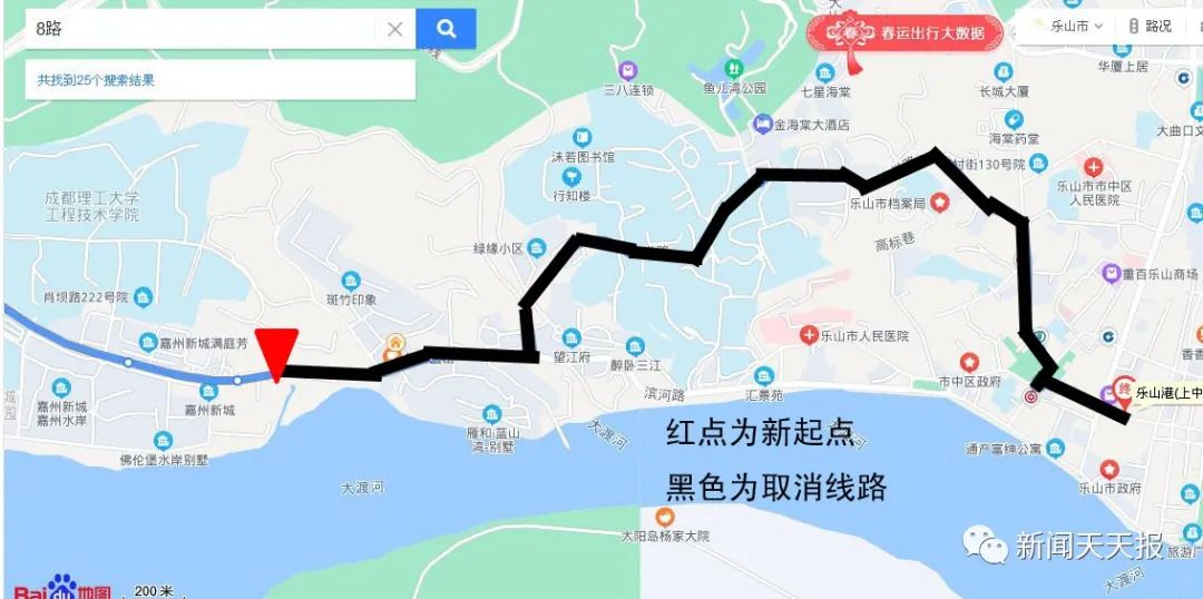 取消站点:乐山港(上中顺站)—海棠广场—海棠路人民南路路口—市应急局—鱼咡湾公园—师院北校门—赛公桥—斑竹湾社区
