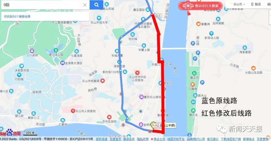 取消站点:市委党校(老年病专科医院、乐山电大)站—人民南路南段
