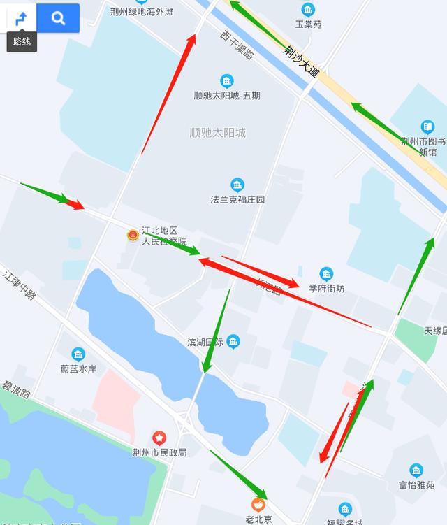 原行驶路线:江汉北路-长港路-工农路-荆沙大道