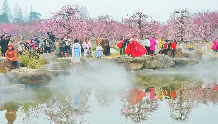 眼下的问花村已是花开千姿百态,整个园区呈现出一派春意盎然的景象。园中梅花已开,微风轻拂,暗香浮动,而后海棠花、樱花、中华木绣球将依次开放,整个花期将延续至四月。为了让更多游客享受问花村的田园风情,感受问花村的浪漫花海,景区在这个赏花季也将推出限量特价票等活动。