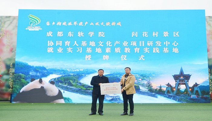 都江堰宣传部供图作为都江堰和成都乡村振兴的重点项目、成都公园城市的示范点位,问花村在校企合作上作出了表率。活动现场,问花村同东软学院、川外成都学院现场签订合作协议。四川外国语大学成都学院创新创业学院在文化村建立大学生实习实践基地和大学生创新创业项目孵化基地。成都东软学院数字艺术与设计学院在问花村建立协同育人基地文化产业项目研发中心和就业实习基地、素质教育实践基地,充分利用校企双方各自资源优势,实现共同发展,共同促进,共享产业、行业发展机遇。